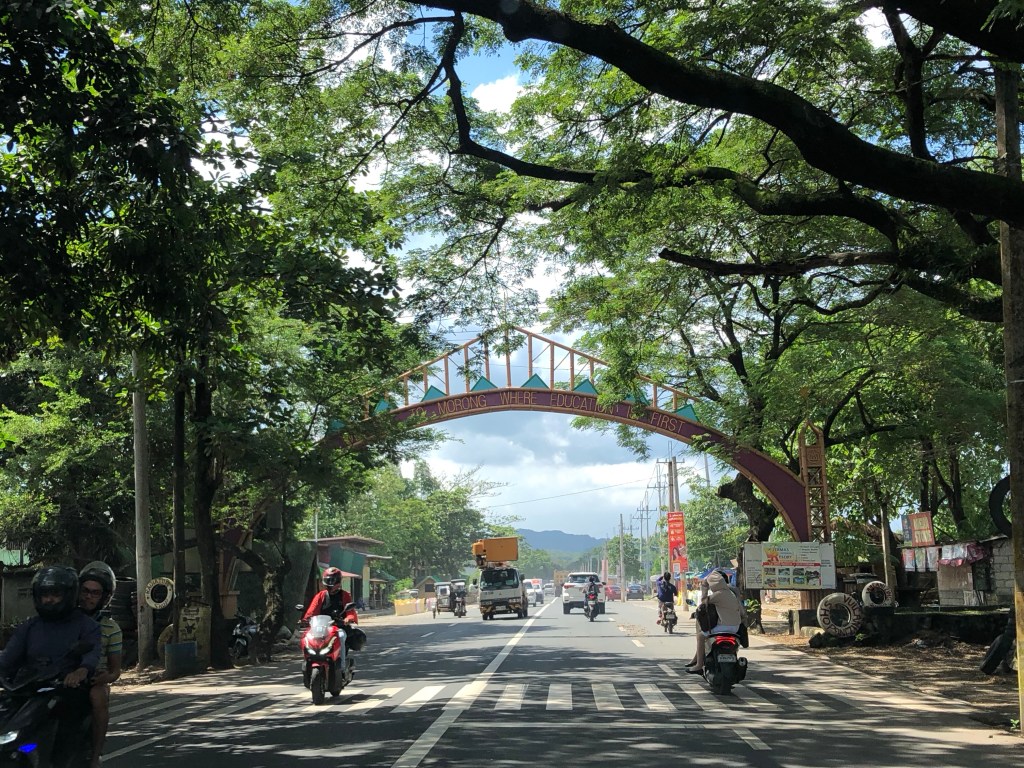 The other side with the text stating one is entering the town of Morong “where education comes first”.