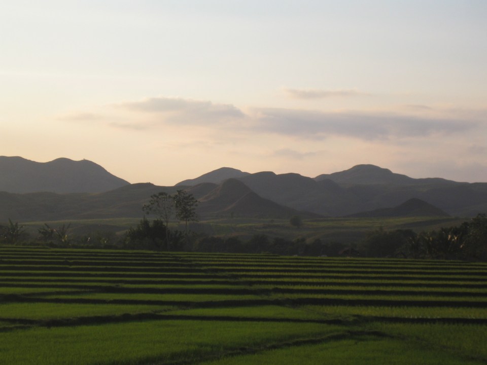 The light from the sunset presents travelers with surreal sights with the rice fields and the mountains often combining for picture-perfect moments. I took this with my Canon Ixy on-board a moving vehicle!